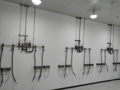 3.5N惰性氣體、氦氣、需留氣領導線應用OD1/4”(6.35mm)的地埋管,支線應用OD1/4”(6.35mm)的地埋管。用悍接三通接頭分離出來支路來對專用設備參與供汽。